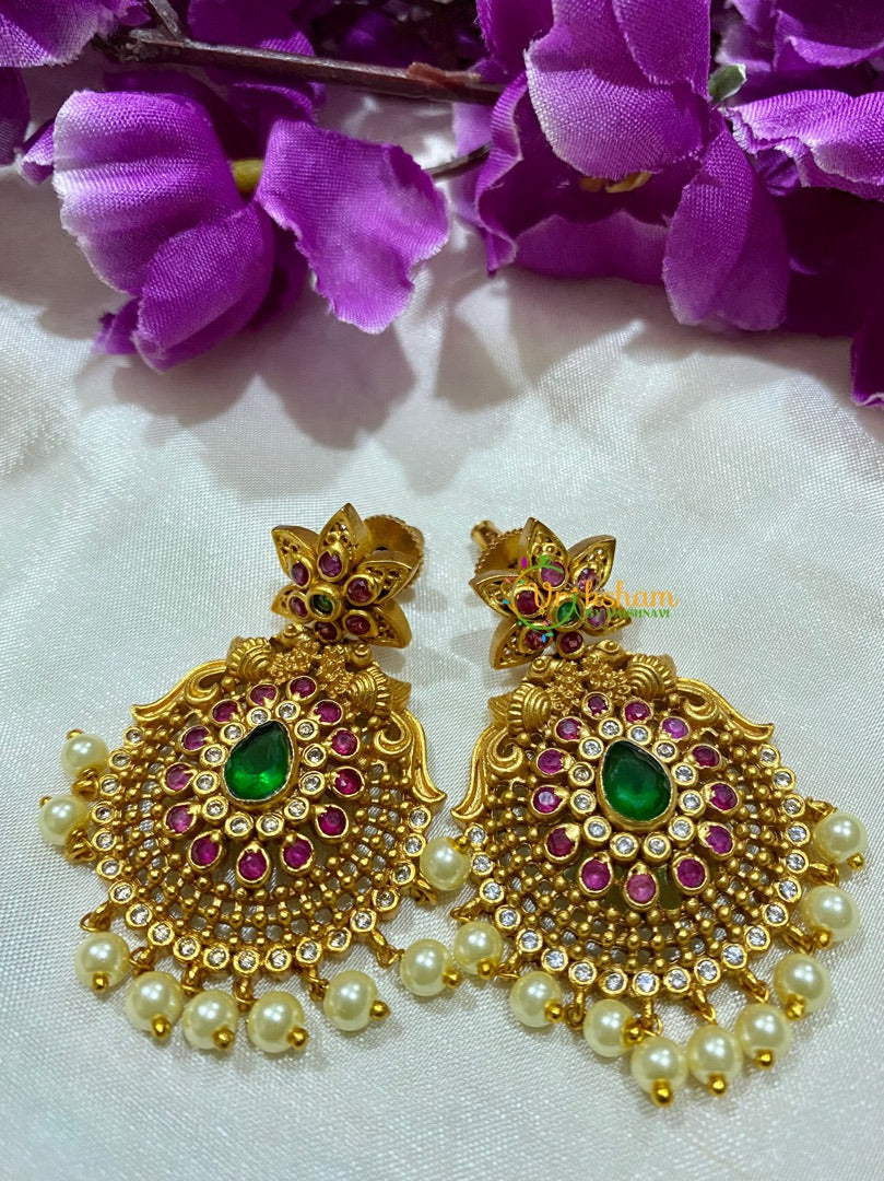 Premium CZ Stone Danglers is gold look alike earrings with pearl finish