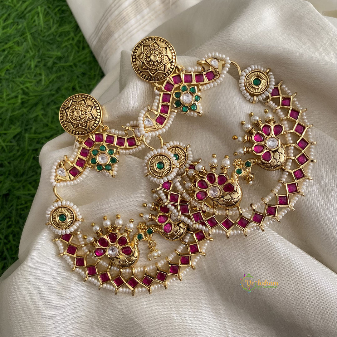 Premium Dual Peacock Chandbalis -Red Green - Dual Peacock designed Chandbalis with studded red green non precious color stones and pearls finish to slay your pretty occasions.