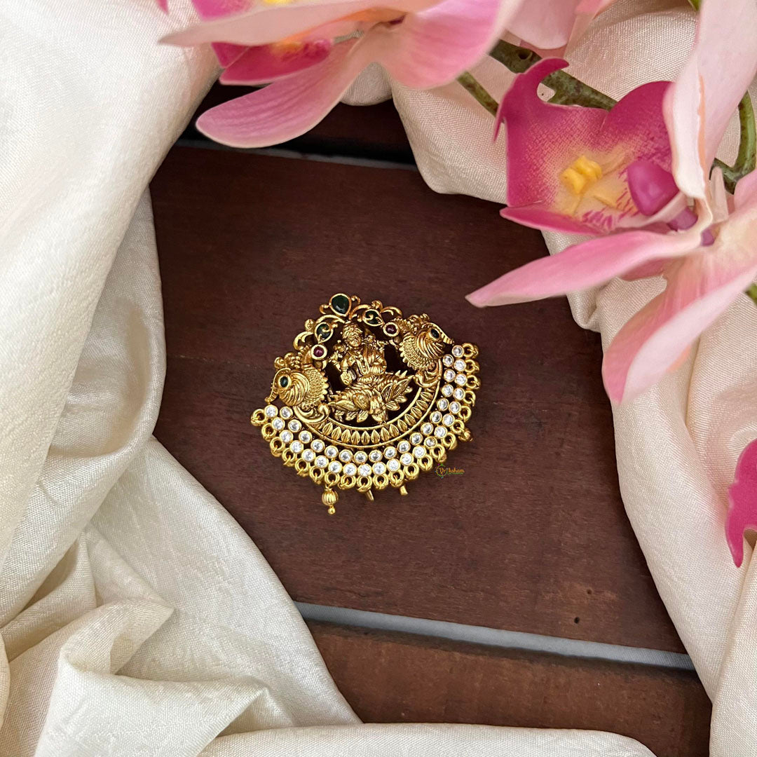 Elevate your traditional hair adornments with our Premium Dual Peacock Lakshmi Jada Billai-Bun Billai-G13108. Featuring two stunning peacocks adorned with Lakshmi, the goddess of wealth, this billai-bun billai is sure to bring prosperity and beauty to any hairstyle. Make a statement with this exquisite piece!