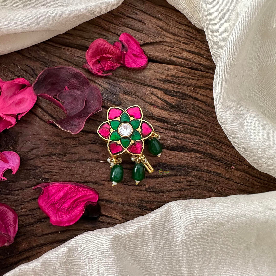 Elevate your hair game with our Premium Floral Jadau Juda Pin in Green Beads. Stunning and luxurious, this pin is adorned with handcrafted floral Jadau design, adding an elegant touch to your hairstyle. Made with premium materials and intricate details, this is a must-have accessory for any sophisticated fashionista.