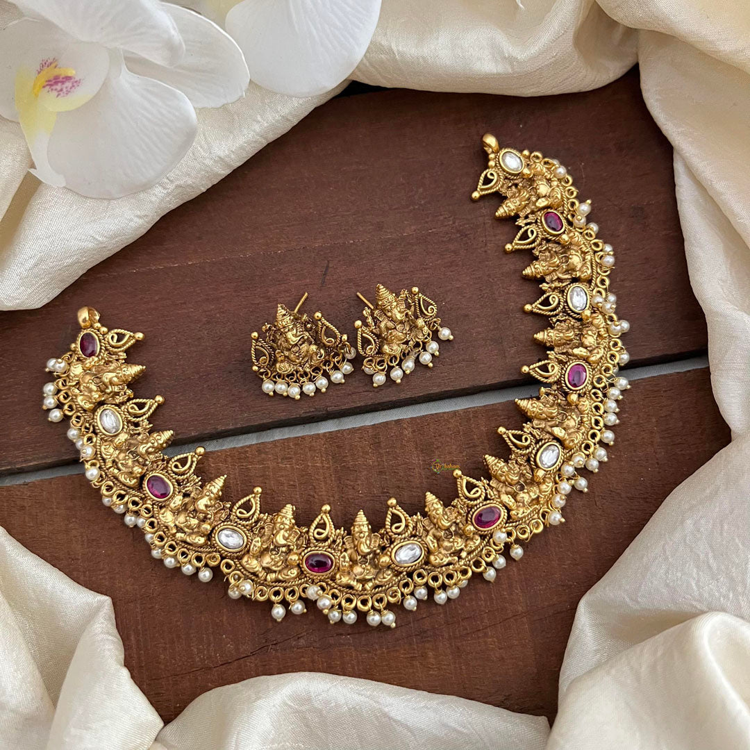 Introducing our exquisite Premium Ganesha Short Neckpiece in vibrant hues of red and white, adorned with lustrous pearls. This piece is a symbol of luxury, elegance, and sophistication, perfect for any fashion-forward individual. Embrace the majestic and divine energy of Ganesha with this exclusive neckpiece.
