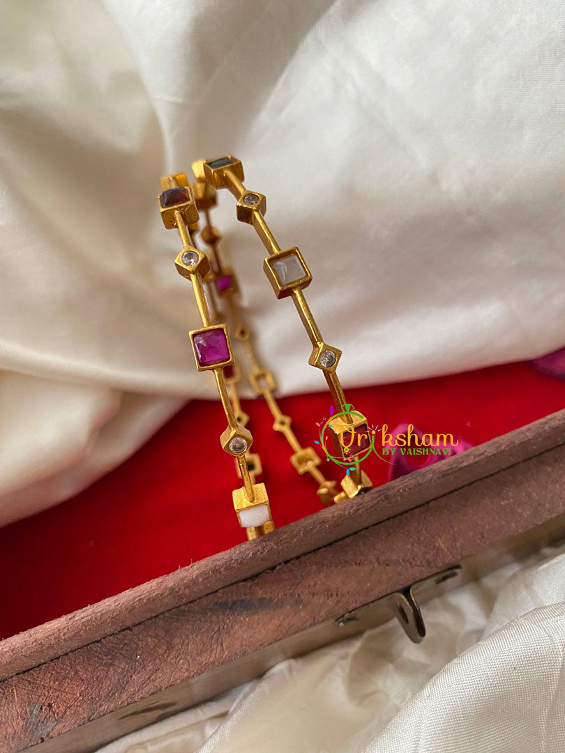 Premium Geometric AD Stone Bangle-Geometric design ad stone along the bangle– Gold like polish AD stone. Come together as a 4 bangles only.