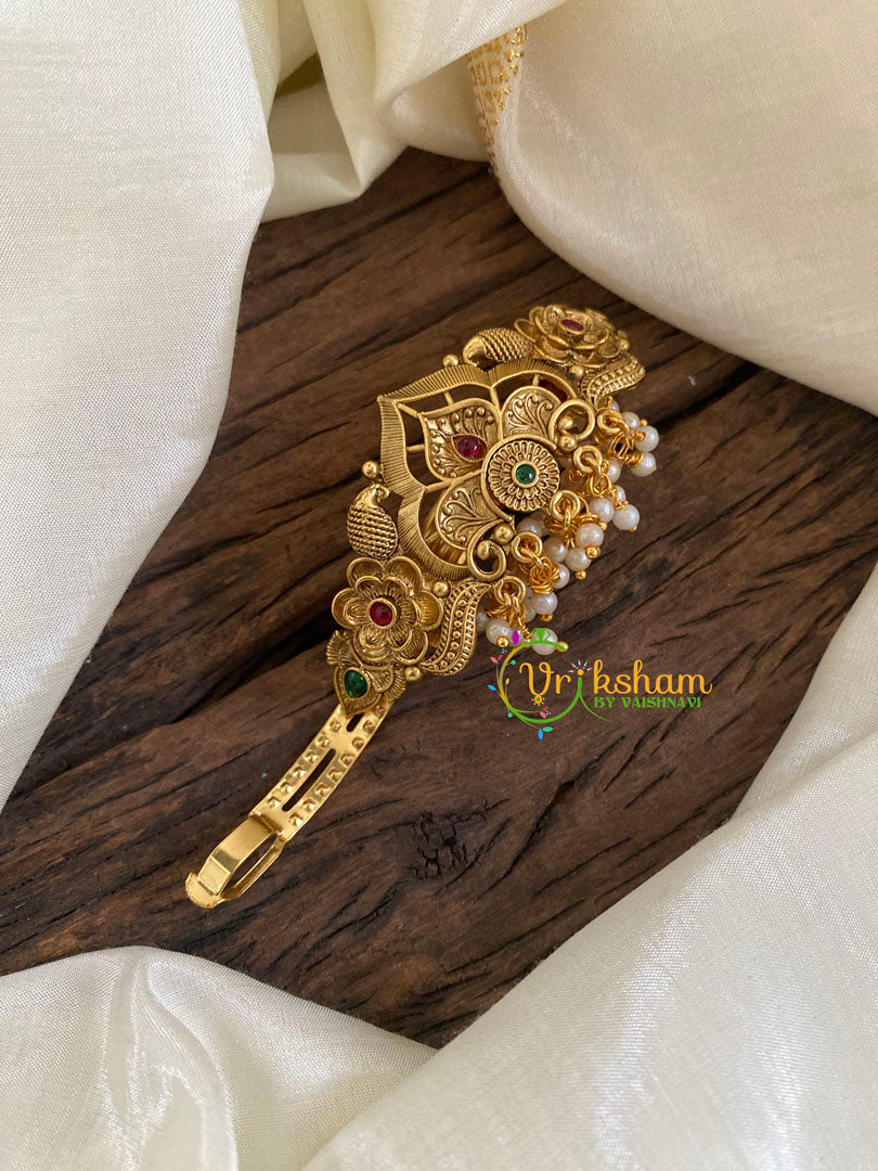 Premium Gold AD Stone Hair Clip - Gold Look Alike Hair Clip – AD stone studded festive wear hair clip.