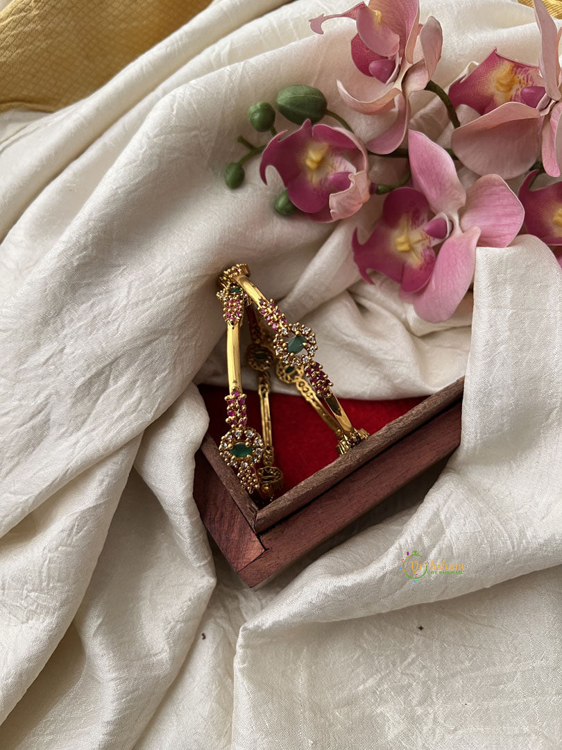 Premium Gold Alike AD Stone Bangle Set - AD Stone studded festive Bangles set.comes as pair only.