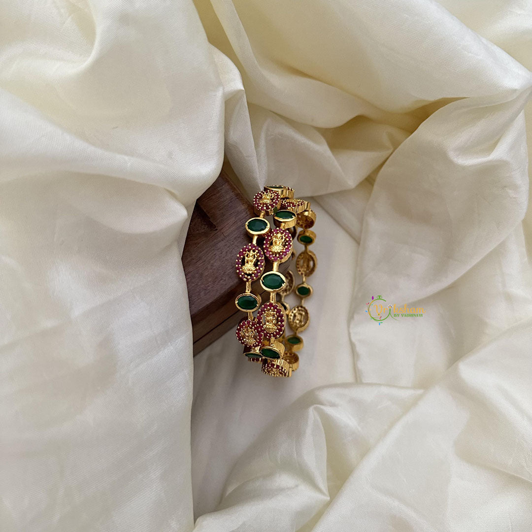 Premium Gold Alike AD Stone Lakshmi Bangle Set-G14957