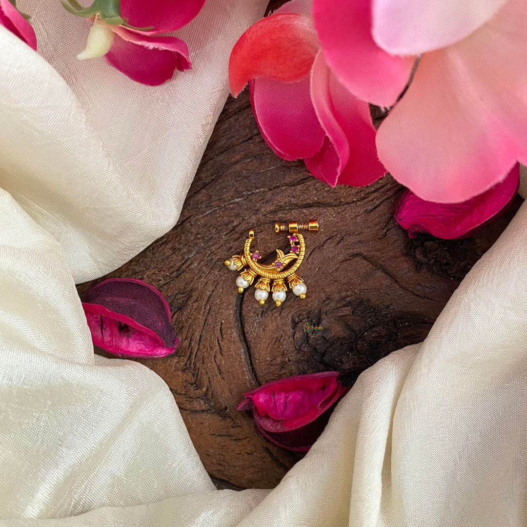 Premium Gold Alike Red AD Stone Nath / Nose pin-Pearl-G13966