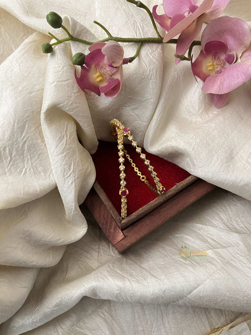 Premium Gold Alike Stone Studded Bangle Set - White & Pink- festive Bangles set. comes as pair only.