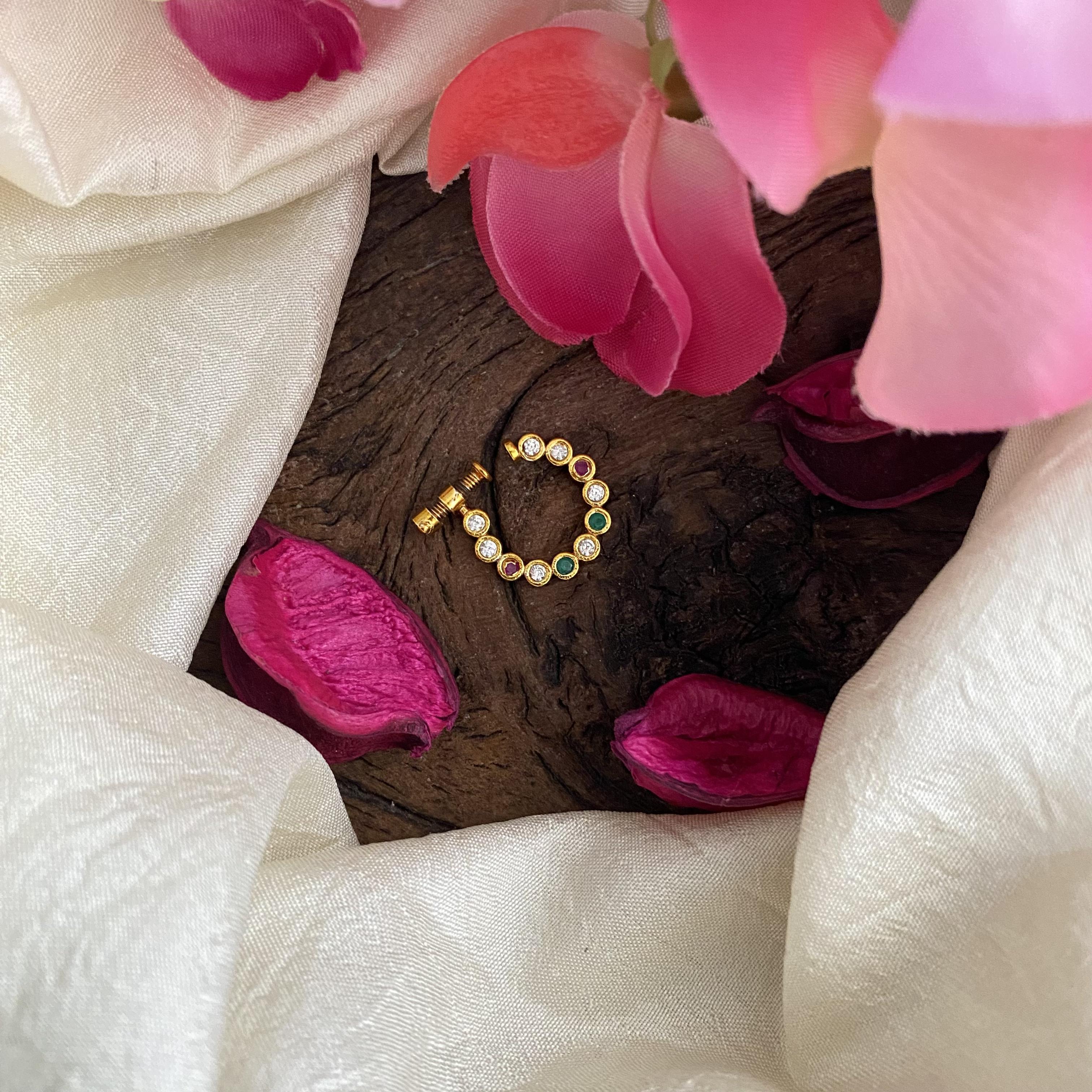 Premium Gold Alike White Nath / Nose pin-Red Green White-G13784