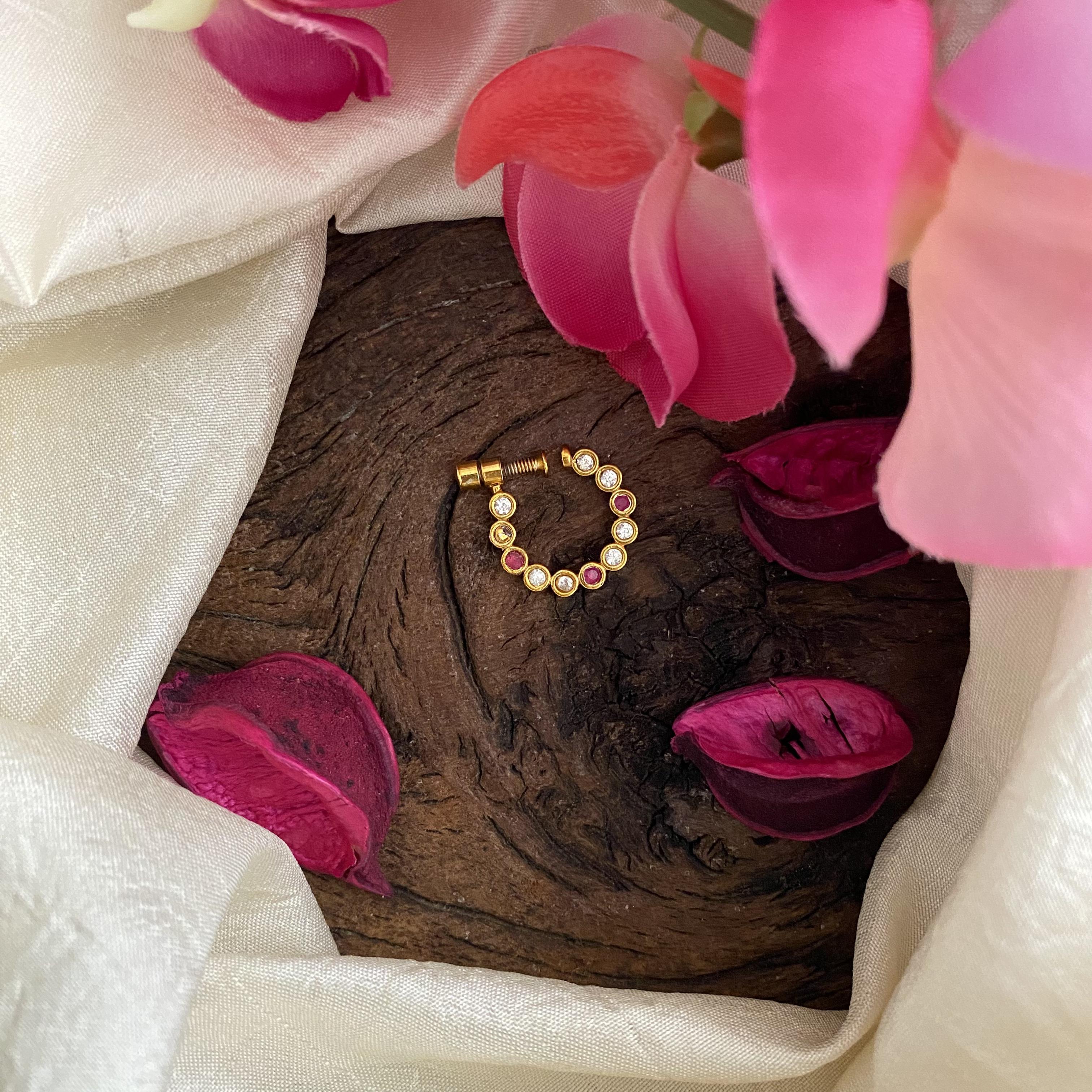 Premium Gold Alike White Nath / Nose pin-Red White-G13782