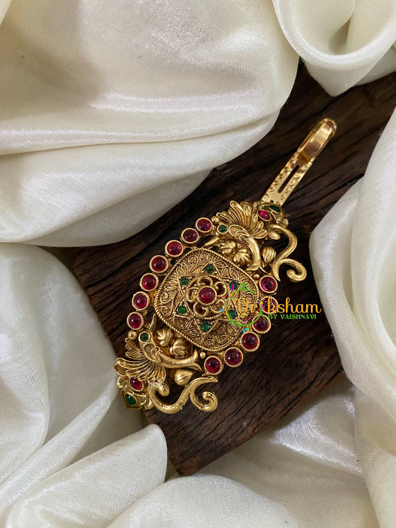 Premium Gold Kemp Hair Clip - Gold Look Alike Hair Clip – imitation kemp stone studded festive wear hair clip.