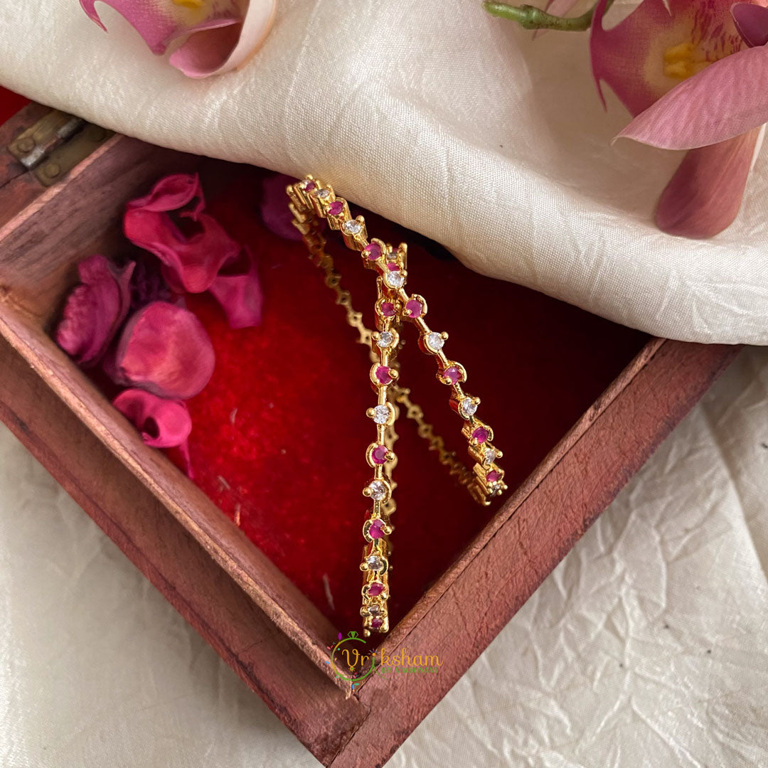 Premium Gold Look Alike AD Stone Bangle Set - Red, White - AD Stone studded festive bangles , Comes as pair only.