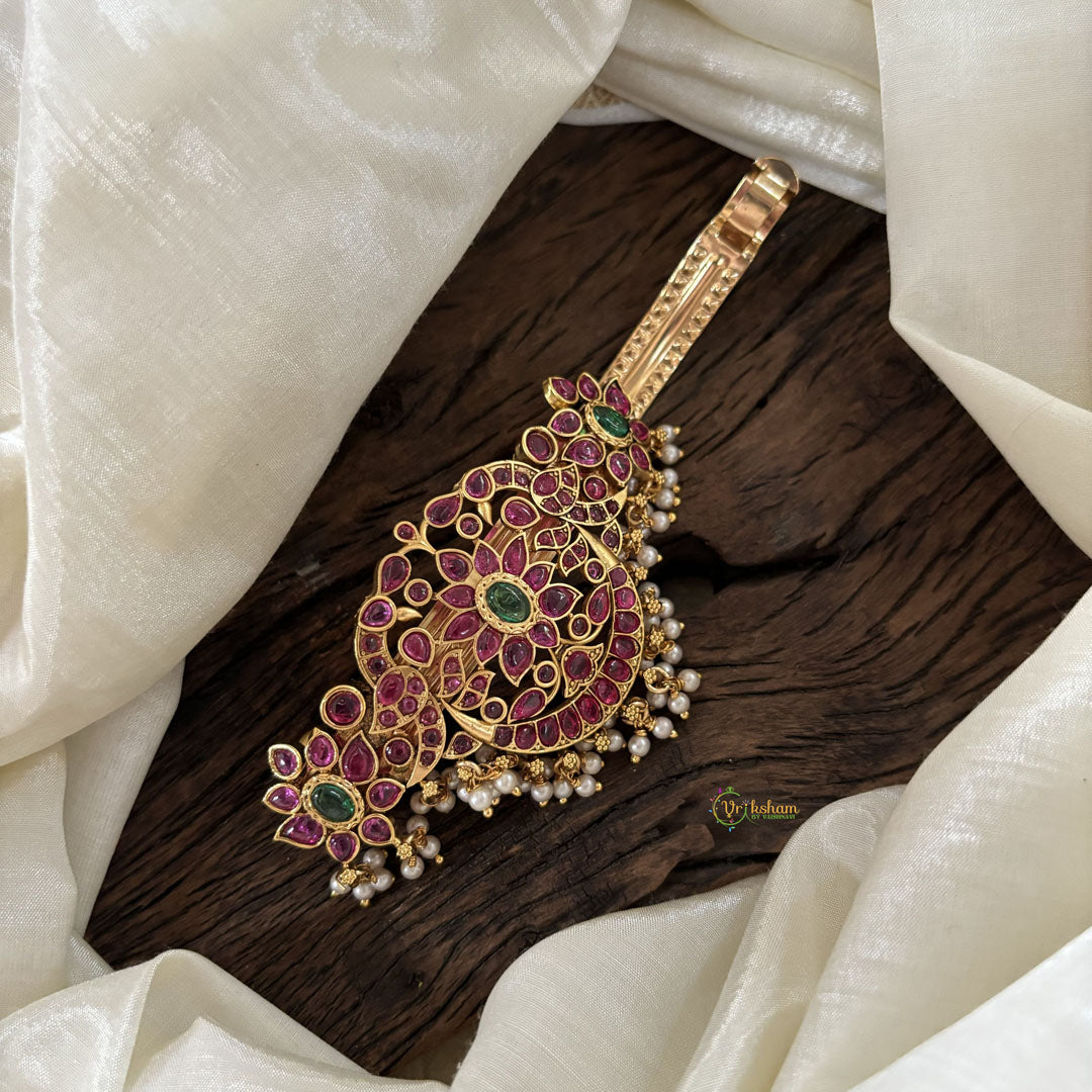Premium Gold Look Alike Hair clip -Pearl-Red Green hair clip for festive braids and hairstyling. Make material:Premium Gold Look Alike Hair clip is made of Temple make, Copper and brass...