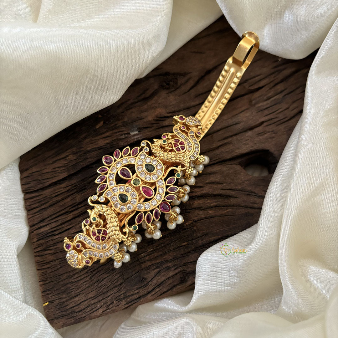 Premium Gold Look Alike Hair clip -Flower White Stone -Gold Bead hair clip for festive braids and hairstyling.