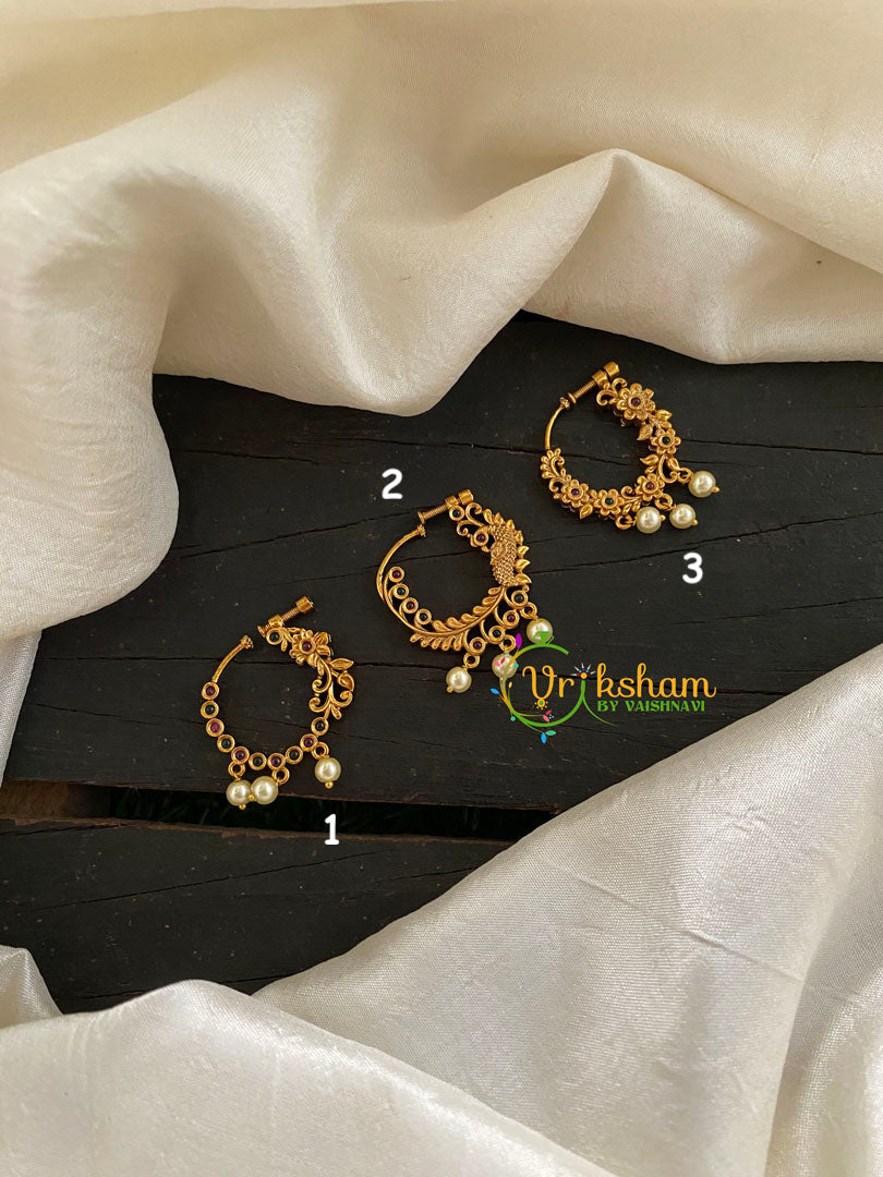 Premium Gold Nath / Nose pin ( Non Pierced Nose rings or naths); Complete AD Stone studded ring type nosepin.