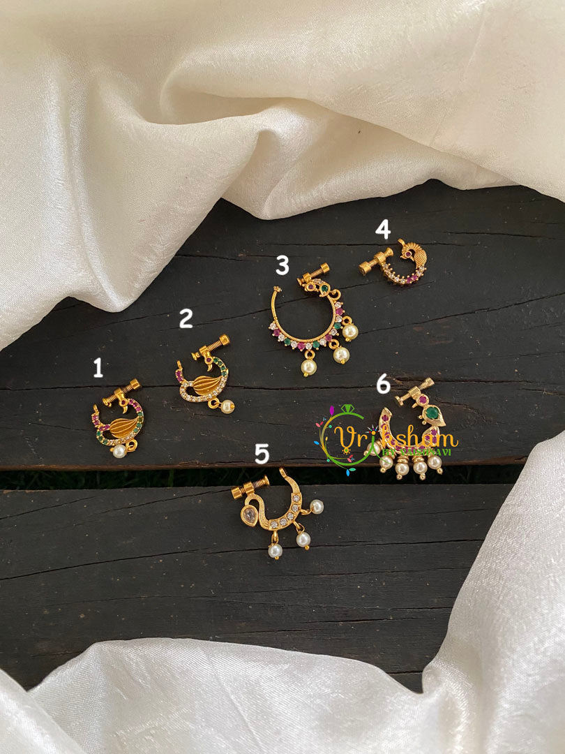 Premium Gold Nath / Nose pin ( Non Pierced Nose rings or naths); Complete AD Stone studded ring type nosepin.