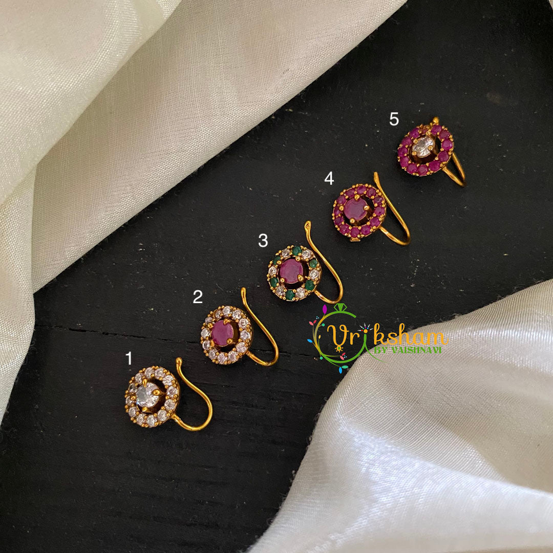 Premium Gold Nath / Nose pin ( Non Pierced Nose pins); Complete AD Stone studded clip on type nosepin.