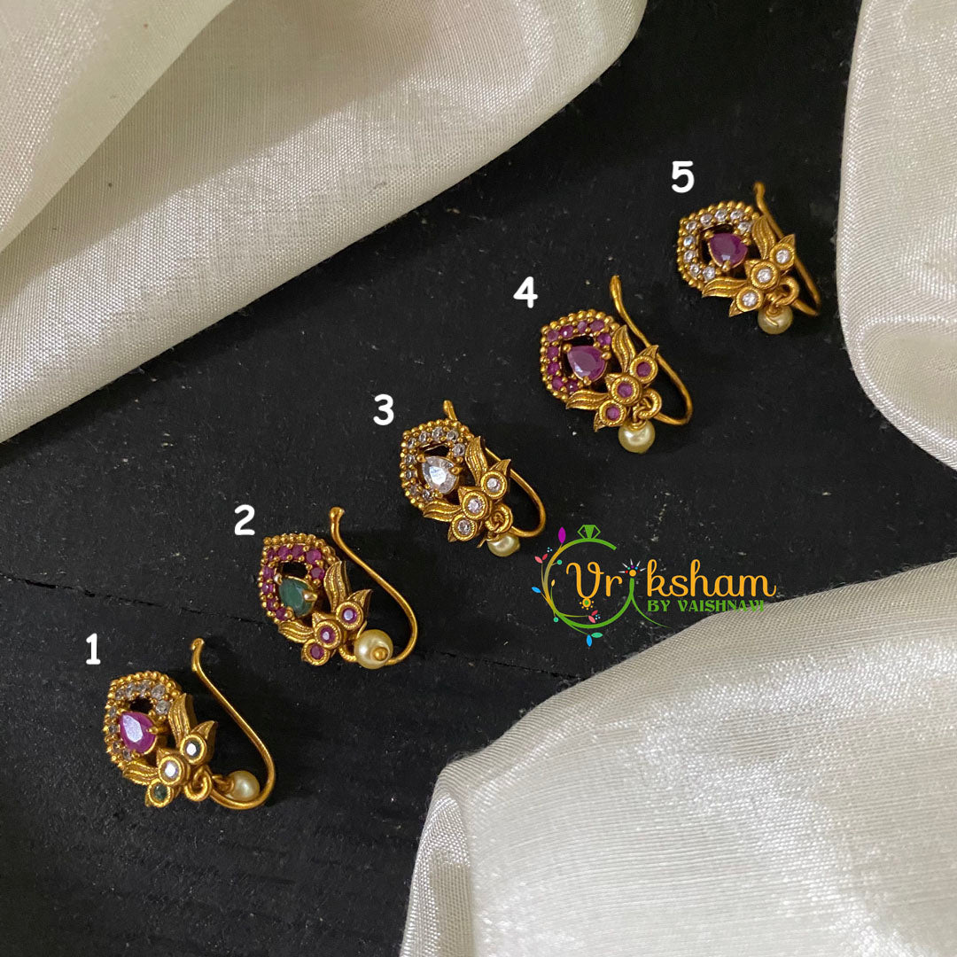 Premium Gold Nath / Nose pin ( Non Pierced Nose pins); Complete AD Stone studded clip on type nosepin. MAKE MATERIAL –Gold Nath , Gold Look alike polish, imitation stones,...