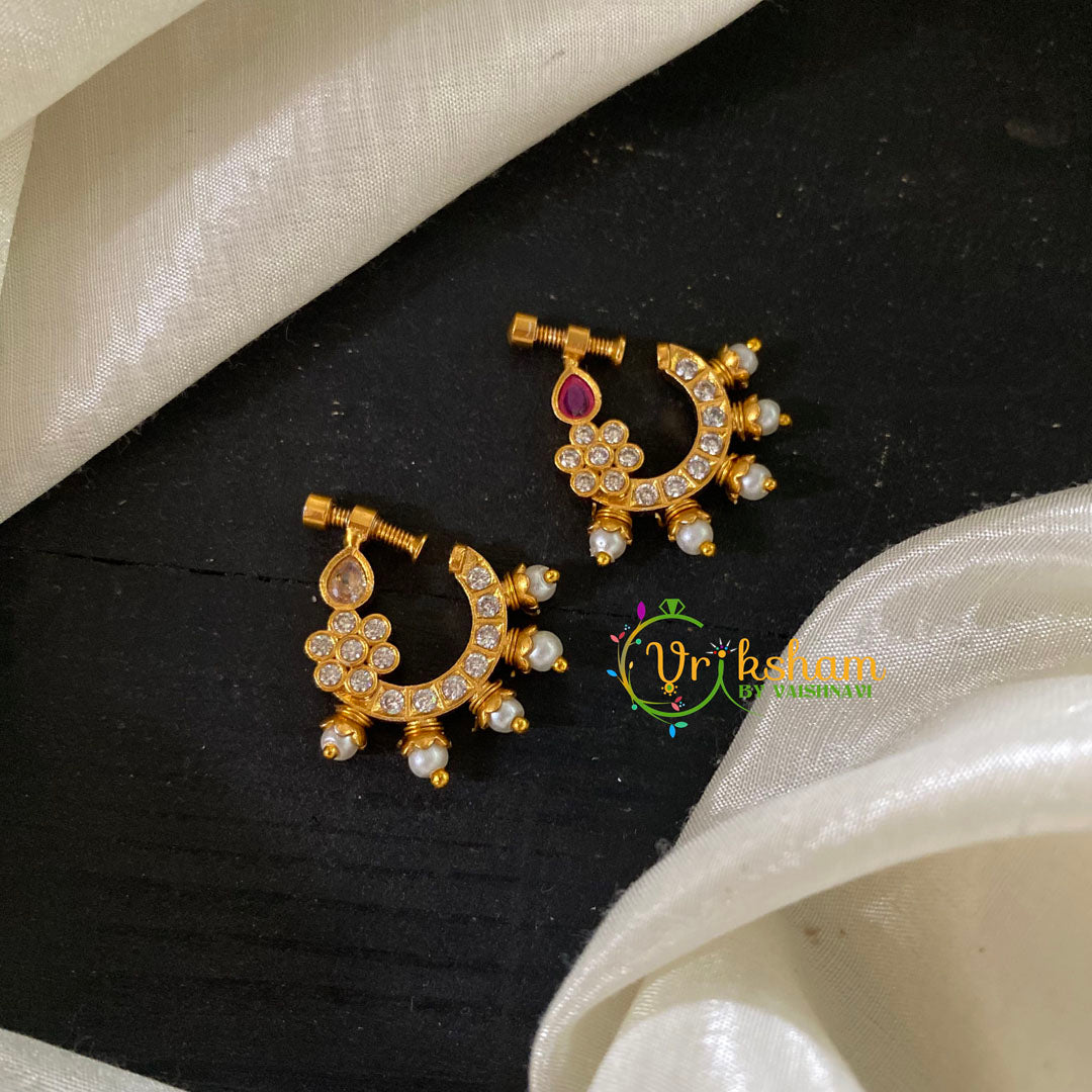 Premium Gold Nath / Nose pin ( Non Pierced Nose pins); Complete AD Stone studded clip on type nosepin.