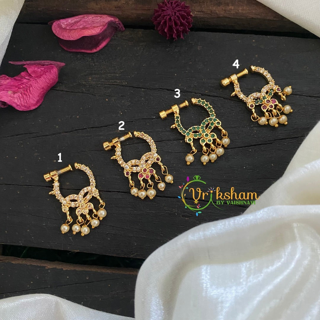 Premium Golden Naths/Nose pin ( Non Pierced Nose rings or naths); Peacock floral, ad stone studded nose pin.