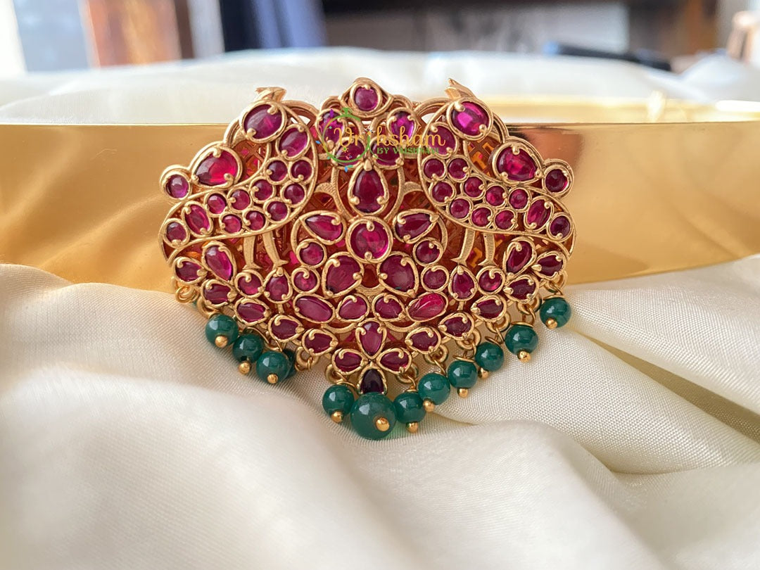 Premium Kemp Hipbelt- Single Pendant Hipbelt -Elegant peacock centre pattern design plain Hipbelt with green bead finish.