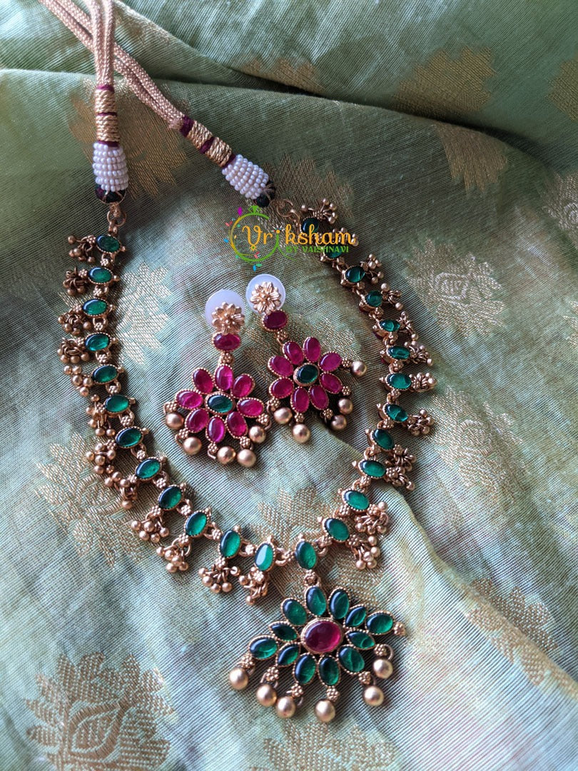 Premium Kemp Reversible Addigai Neckpiece -Red and Green Kemp studded premium neckpiece - REVERSIBLE Neckpiece, comes with Reversible earrings.