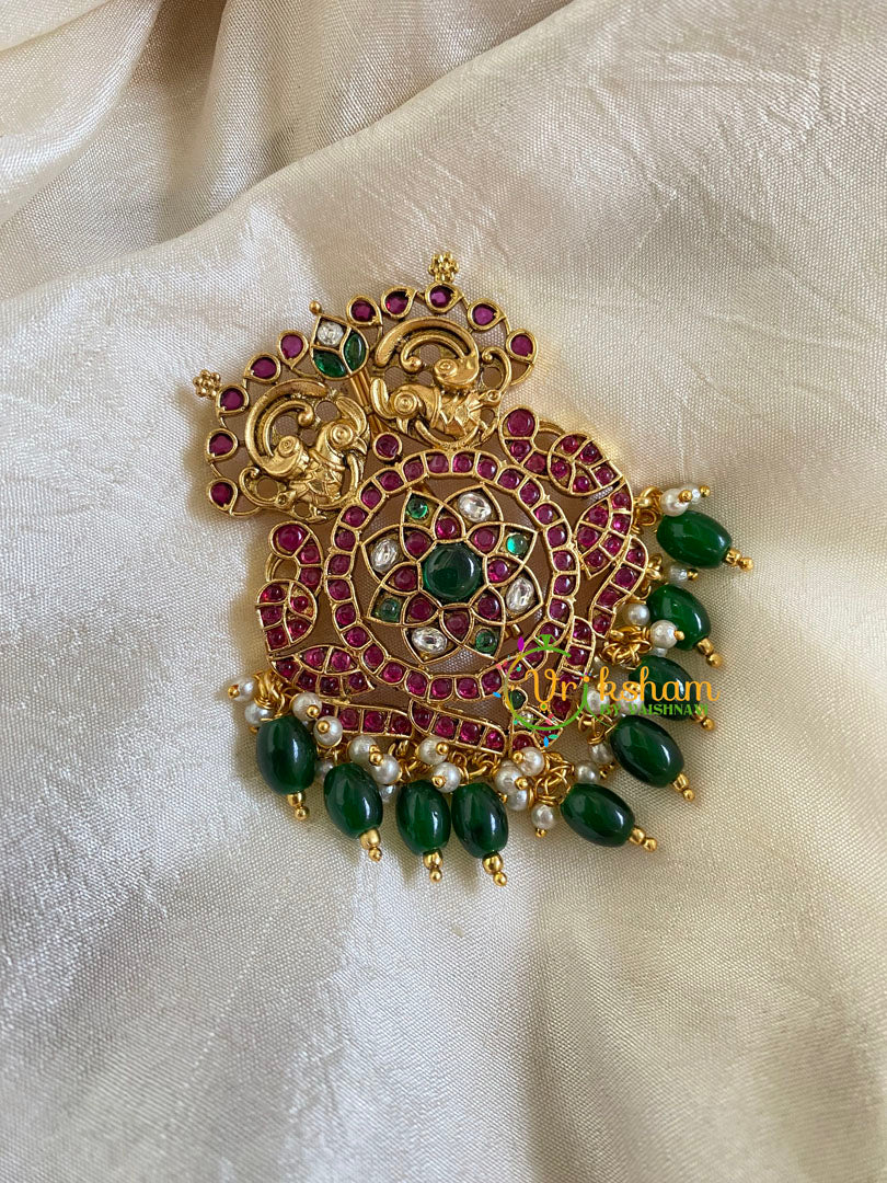 Premium Kemp Single Jada Billai -Bun Billai– Hair Accessory-RED GREEN- Floral patterned imitation kemp stone set single piece billai. Green bead finish.