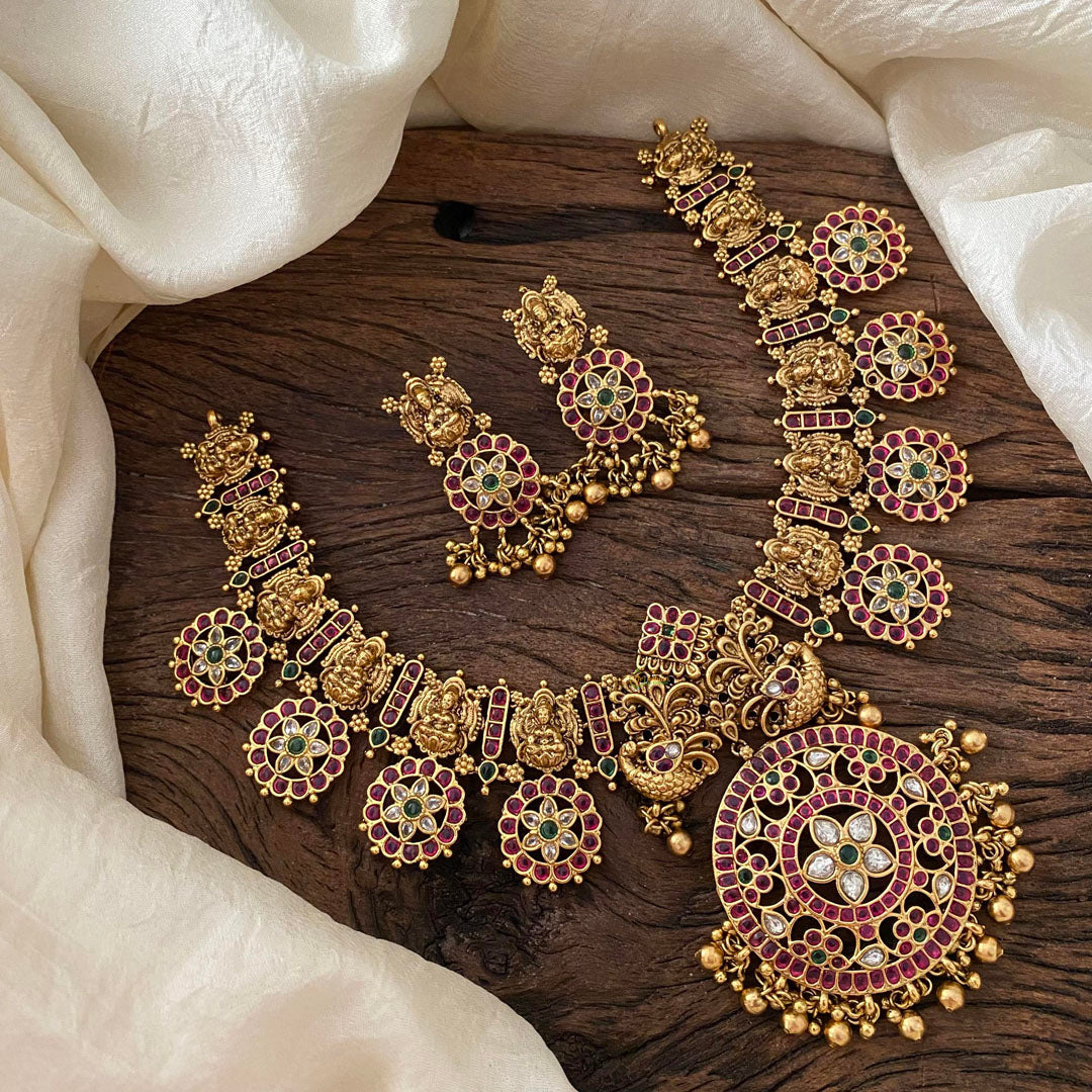 For more such pieces visit, https://vrikshamindia.com/product-category/golden-jewellery/long-neckpieces/