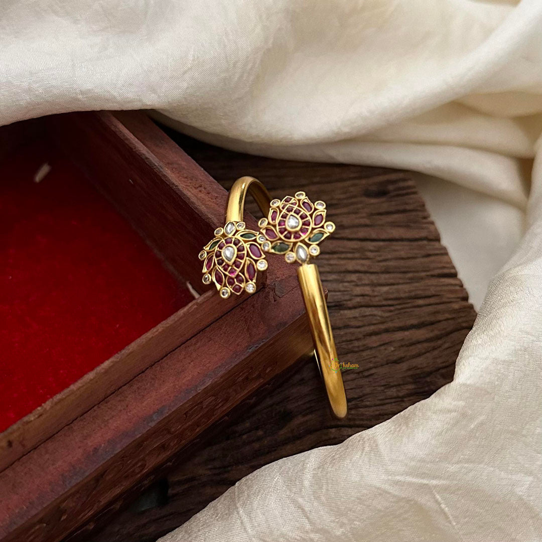 Elevate your style with our luxurious Premium Kundan Lotus Pendant bracelet. This exquisite piece features a stunning Kundan lotus pendant, adding an elegant touch to any outfit. Immerse yourself in the world of sophistication and beauty with this exclusive bracelet.