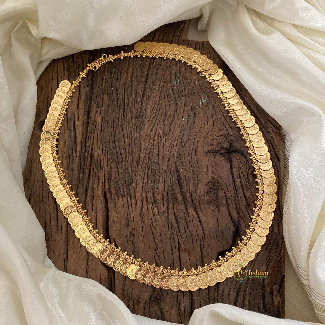 Premium Lakshmi Kaasumalai Haram -LAYERED Neckpiece Coin style long neckpiece; with two mogappu; comes as NECKPIECE ONLY.