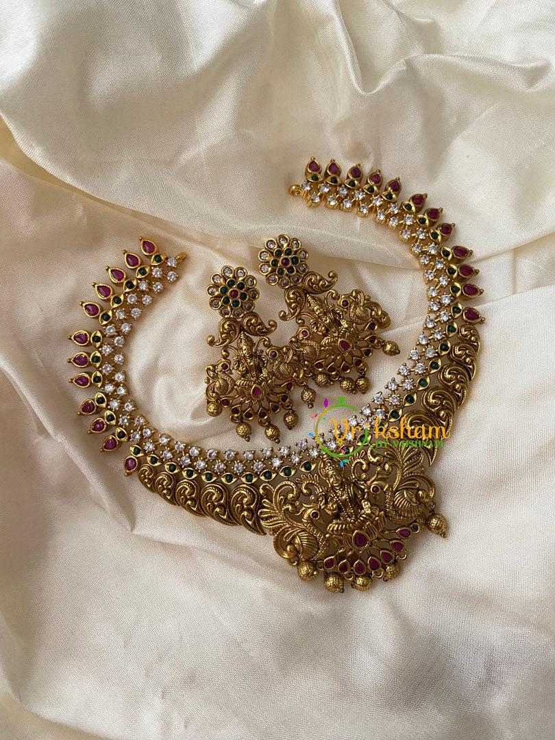 Premium Lakshmi Choker Short Neckpiece -Temple Neckpiece -Intricately Designed Temple Neckpiece, with lakshmi idol; comes with matching earrings.