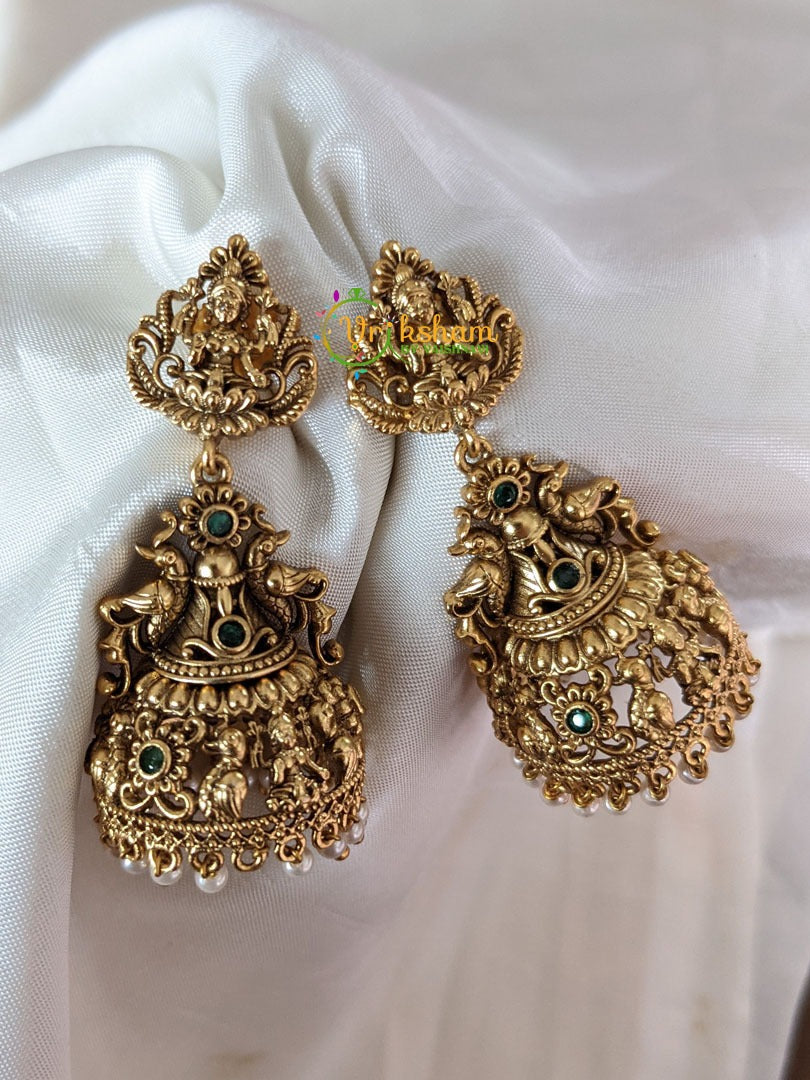 Premium Long Lakshmi Jhumkas -Temple Jhumkas - gold look alike earrings with pearl finish.