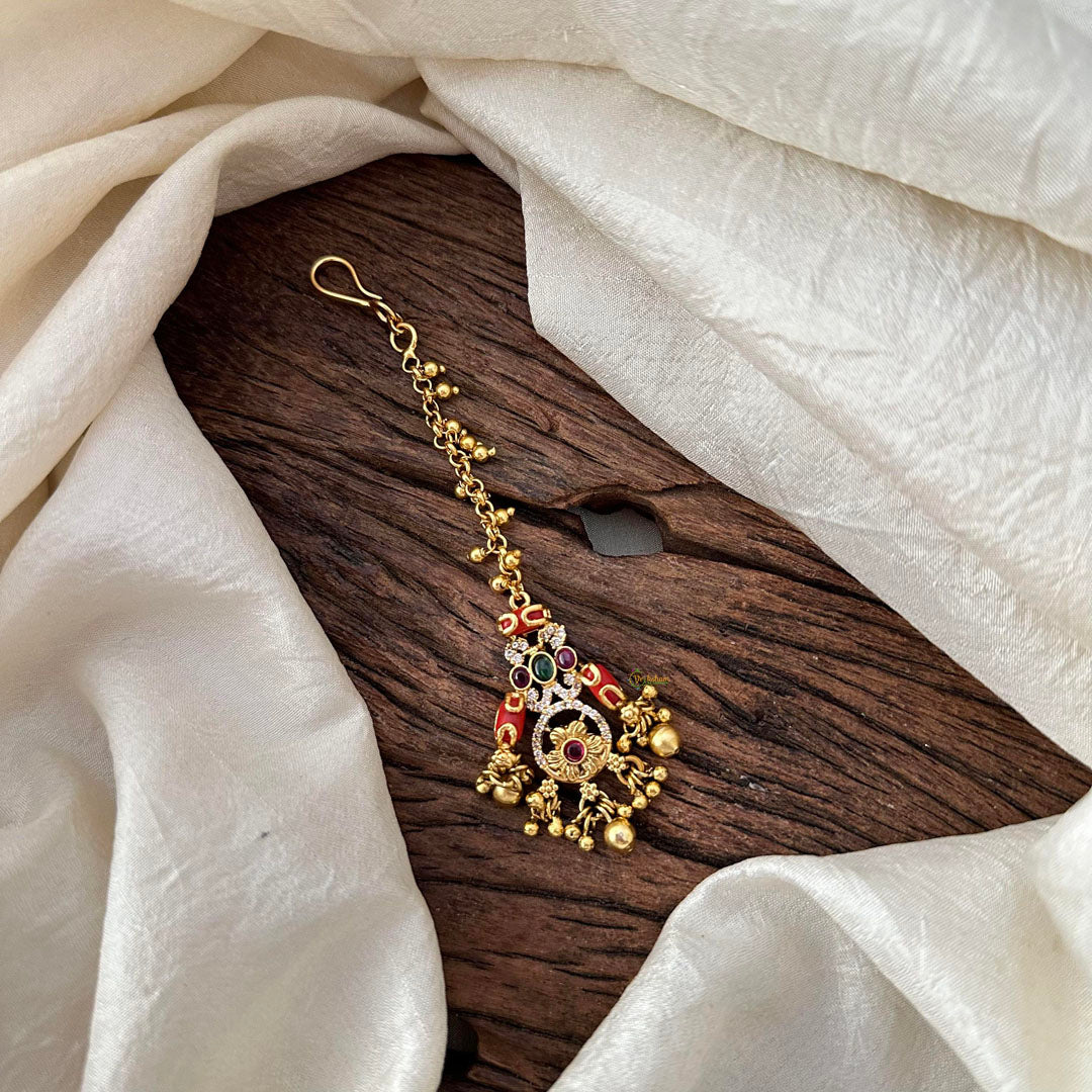 Elevate your bridal look with our Premium Maang Tikka adorned with vibrant green beads and lustrous pearls. Handcrafted to perfection, this stunning piece will add a touch of elegance and sophistication to your overall ensemble. Make a statement and exude luxury with this exclusive Maang Tikka.