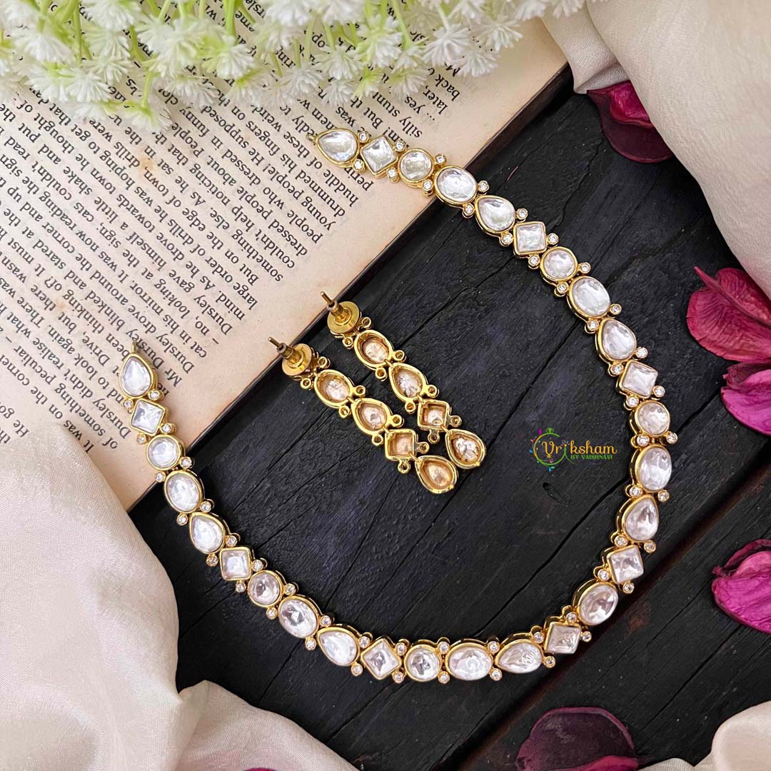 Premium Moissanite Short Neckpiece - diamond look alike statement jewelry; comes with matching earrings.