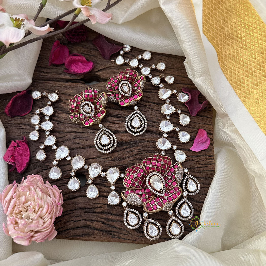 Elevate your style with our Premium Mossanite Flower Pendant Victorian Diamond Neckpiece. Crafted with the finest mossanite and dazzling diamonds, this neckpiece exudes elegance and luxury. The intricate flower design adds a touch of sophistication to any outfit. Make a statement and stand out in the crowd with this exquisite piece.