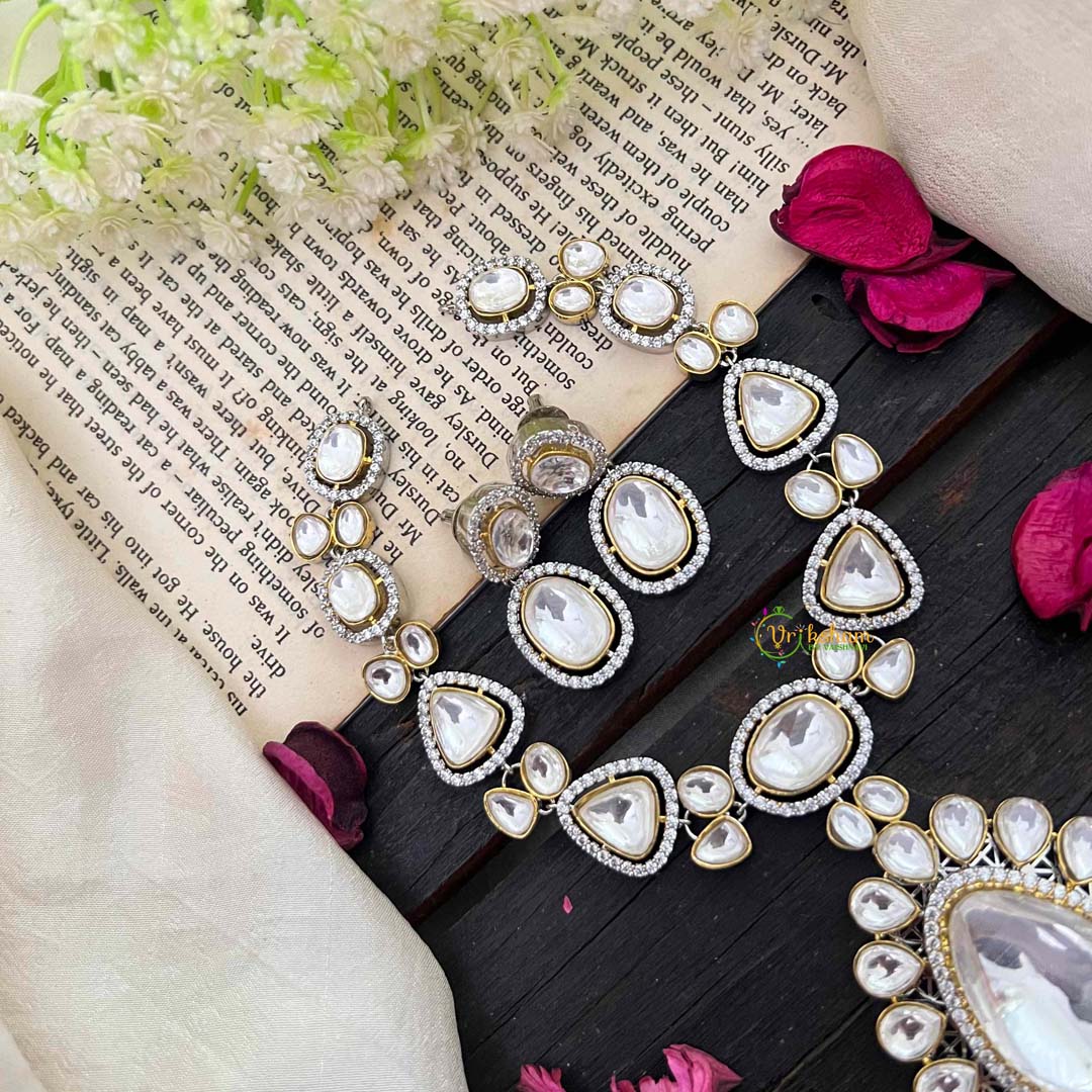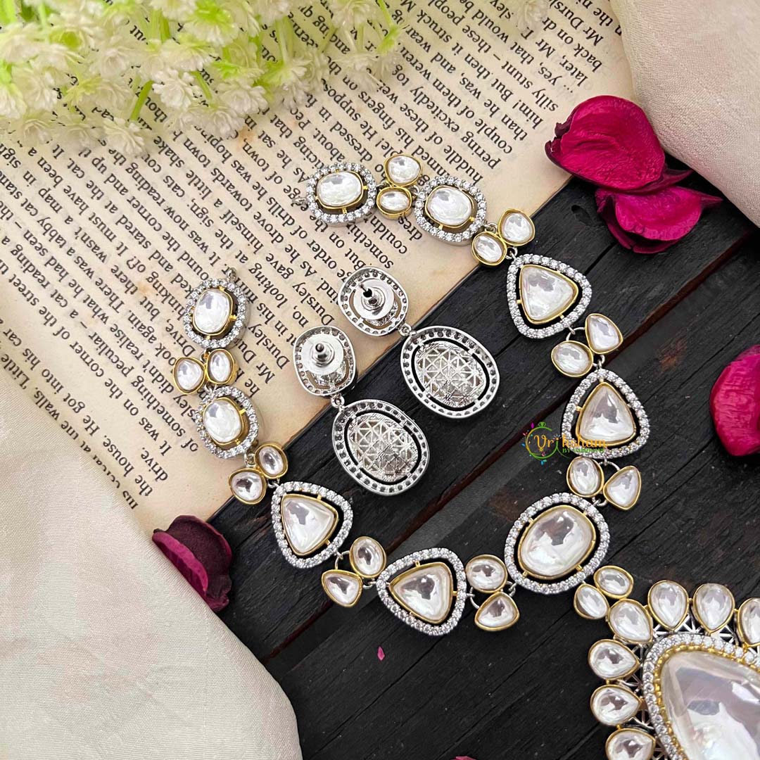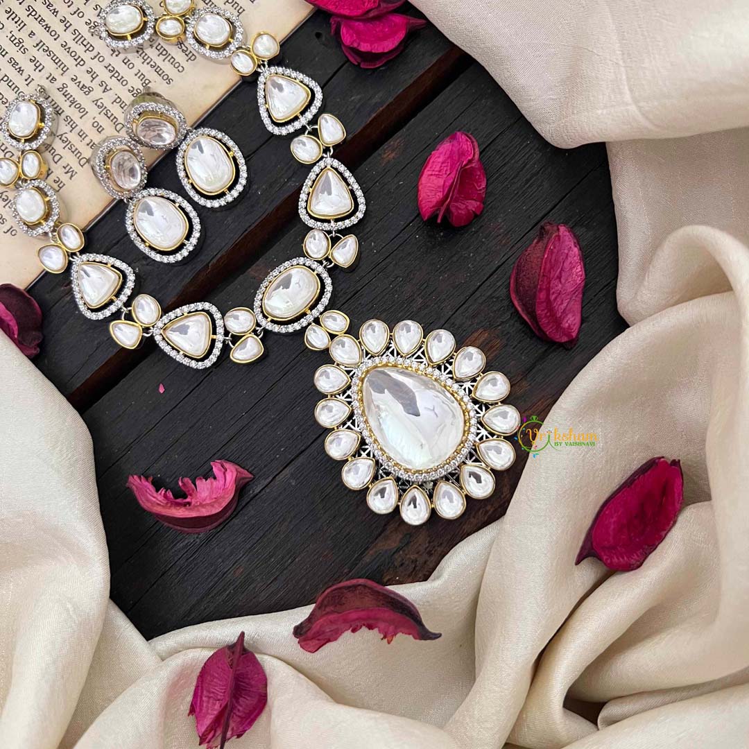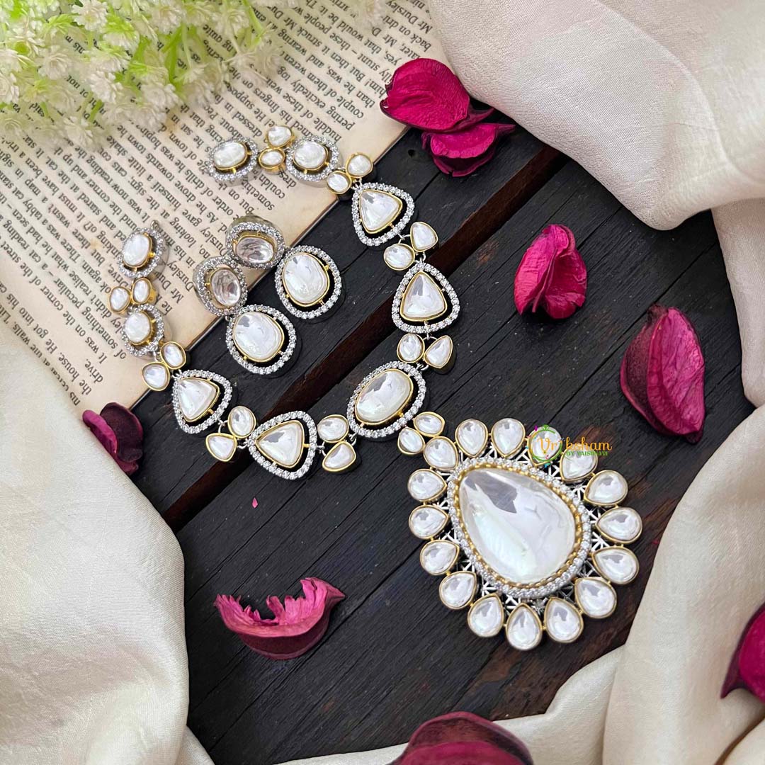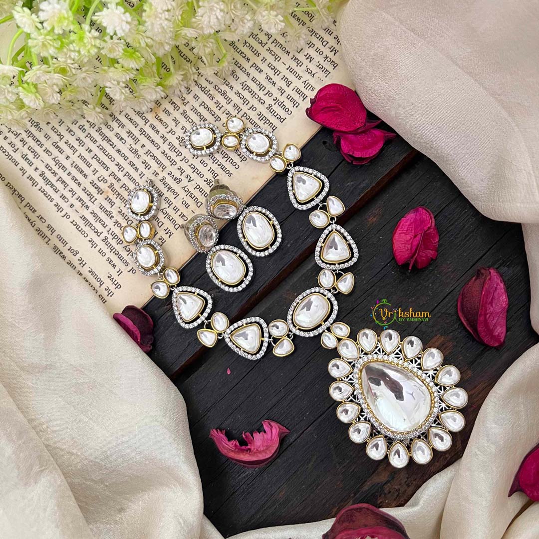 Premium Moissanite Pendant Short Neckpiece - diamond look alike statement jewelry; comes with matching earrings.