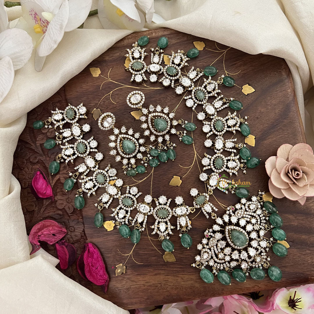 Indulge in luxury with our Premium Pastel Green Victorian Diamond Choker adorned with shimmering diamonds. The Victorian-inspired design adds a touch of elegance to any outfit. Treat yourself to a piece of timeless beauty that will elevate your style. Perfect for special occasions or everyday wear.