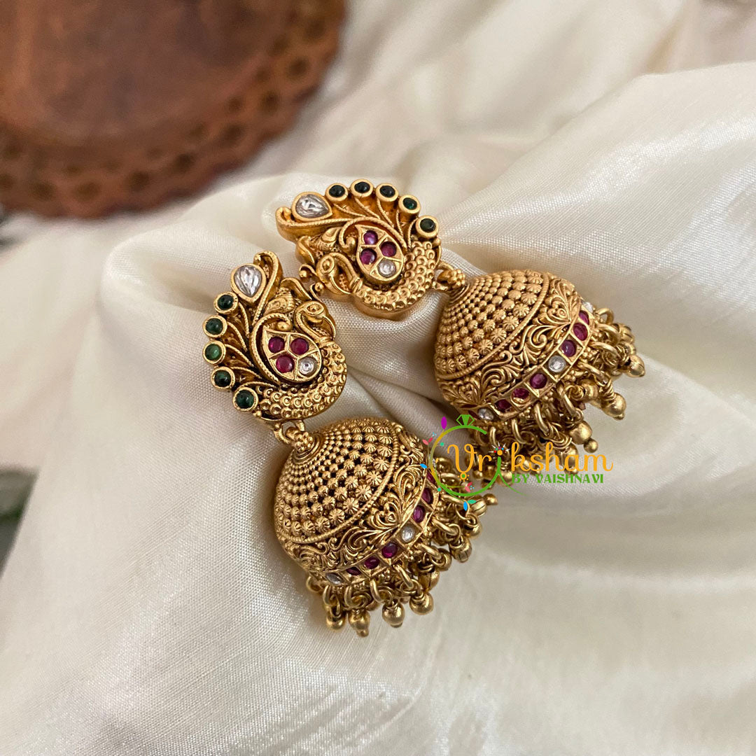 Premium Peacock AD Stone Jhumkas -ghungroo - G9138