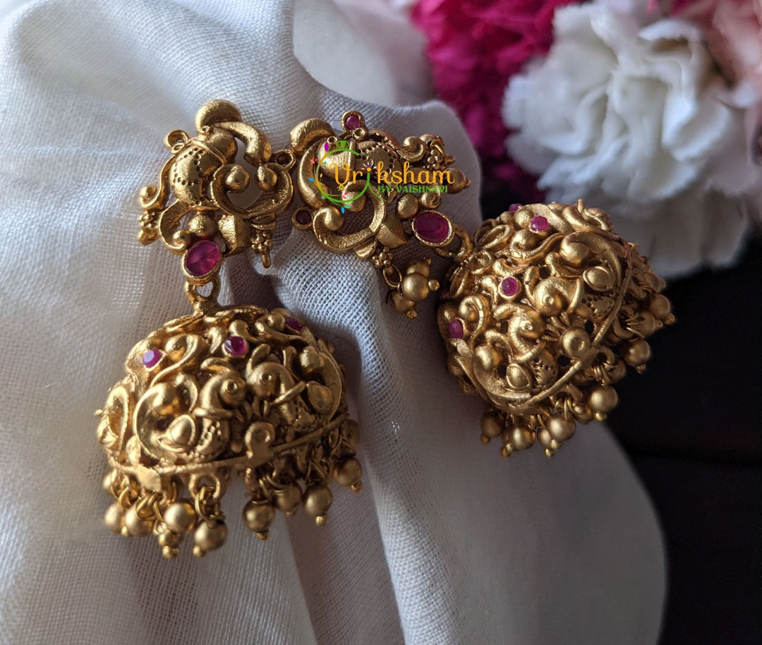 MAKE MATERIAL – This Matt peacock Jhumkas with Red Stones are made of copper and brass.