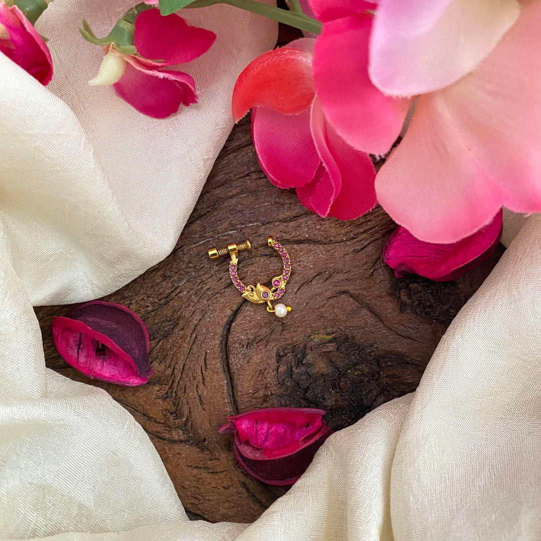 Premium Peacock Red AD Stone Nath / Nose pin-Pearl-G13999