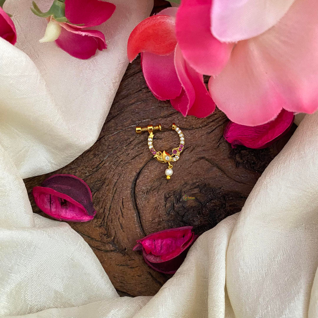 Premium Peacock White Red AD Stone Nath / Nose pin-Pearl-G14000