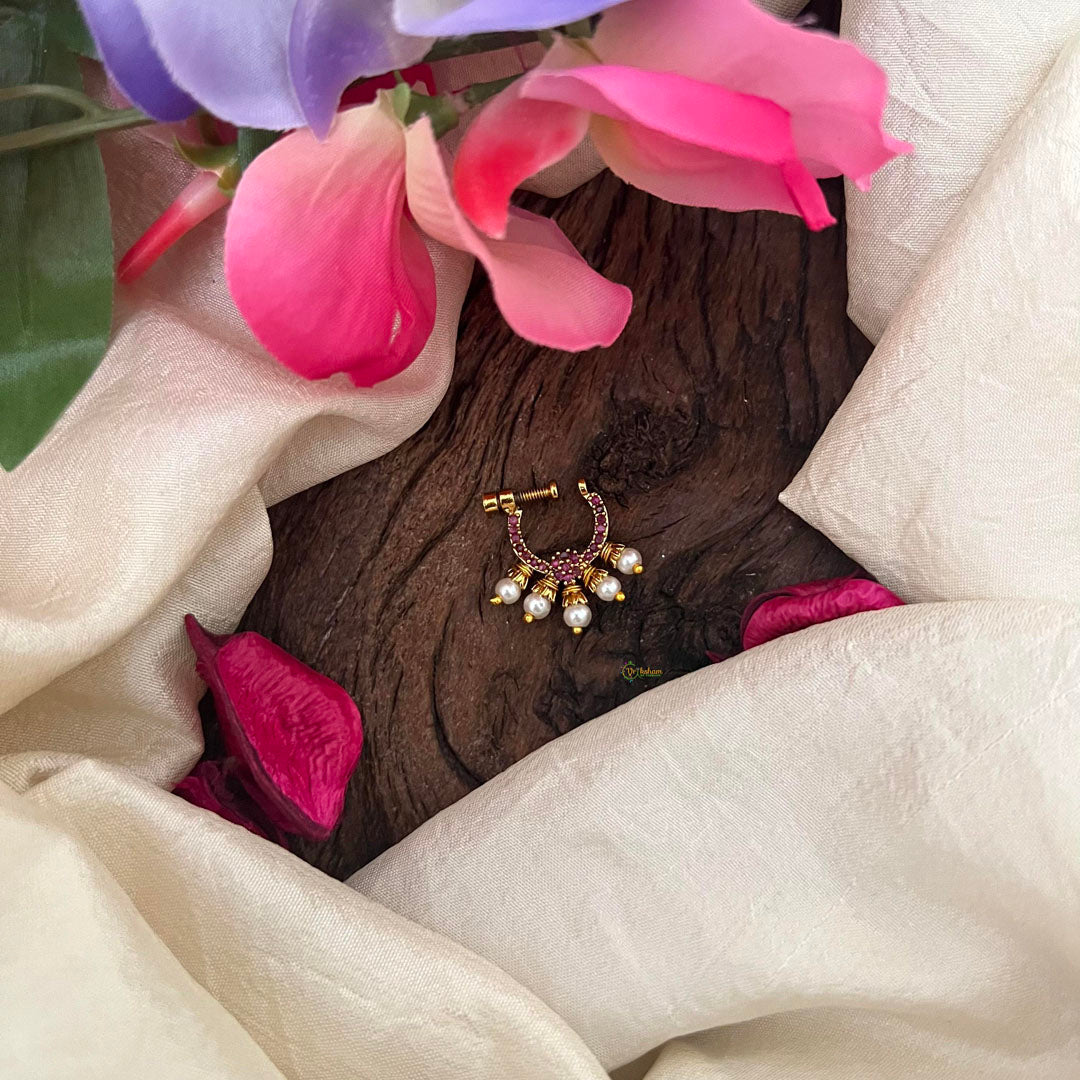 Premium Red Floral AD Stone Nath / Nose pin-Pearl-G13863