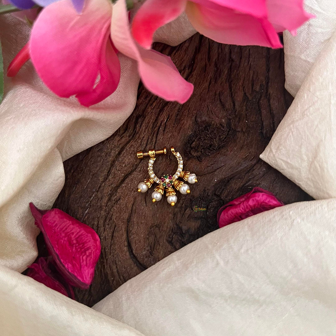 Premium Red White Green Floral AD Stone Nath / Nose pin-Pearl-G13865