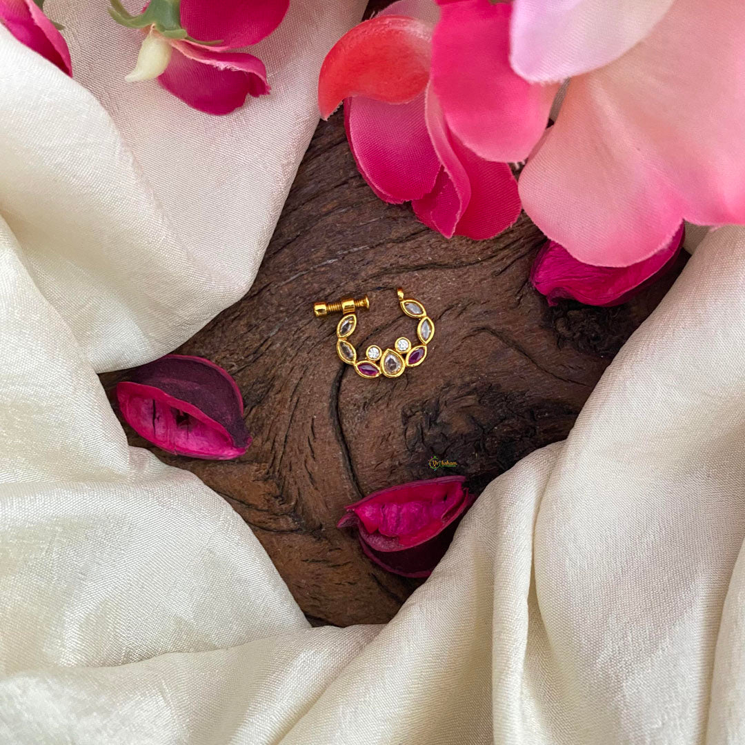 Transform your look with our exquisite AD Stone Nath/Nose Pin. Adorned with sparkling stones, this elegant piece adds a touch of glamour to any ensemble. Make a statement of elegance...