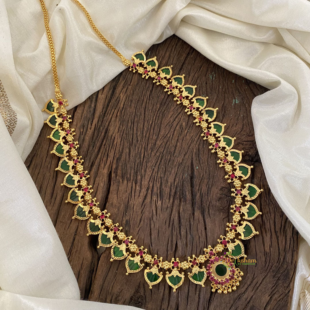 Premium Traditional Kerala Green Palakka Pendant Long Haram- Green Stone charm Neckpiece- Traditional Kerala jewelry; NECKPIECE ONLY