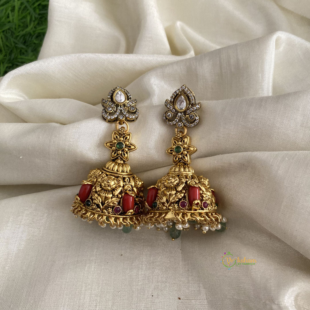 Premium Victorian Mix Dual Peacock Jhumkas-White, Golden-Pearl-G11894