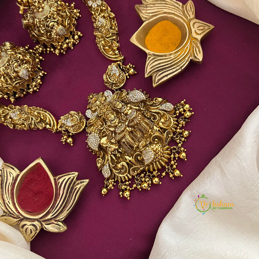 Crafted with attention to detail, this piece honors traditional jewelry-making while offering modern durability. Perfect for those who appreciate authentic temple jewelry with a touch of sparkle.