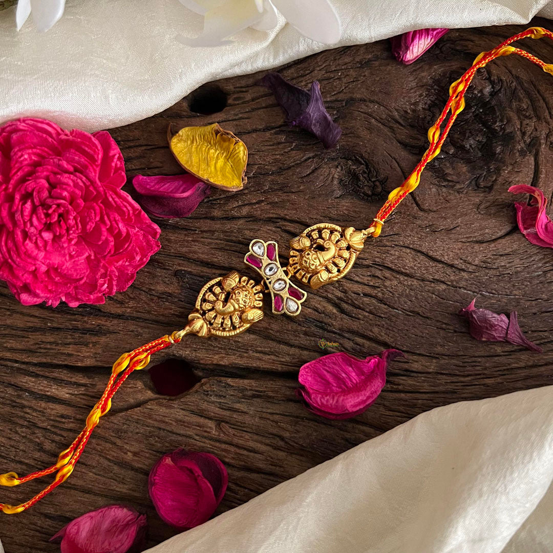 Celebrate the bond of love and protection with our Rakshabandhan Kundan Mayil Rakhi! This beautifully crafted rakhi features intricate kundan work and a charming peacock design. Perfect for your dear brother, it will add a touch of elegance to the festivities. Show your love with this unique rakhi!