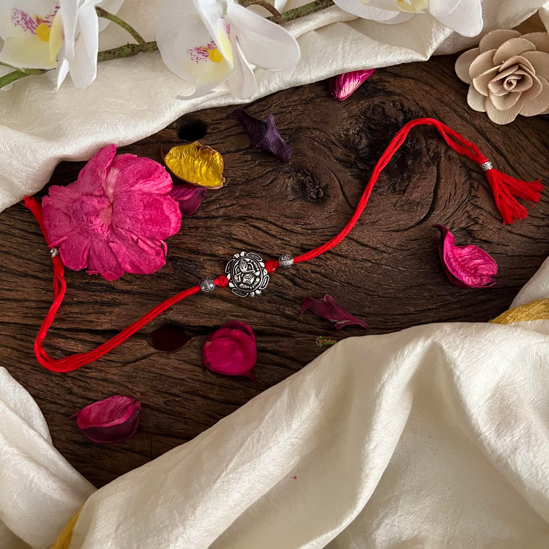 Celebrate Rakshabandhan with our beautiful Silver Ganesha Rakhi in a vibrant red color! This rakhi is the perfect way to show your love and appreciation for your brother. The intricately designed Rakhi features a silver Ganesha charm, adding a touch of auspiciousness and blessing to the occasion. Limited stock available. Order now!