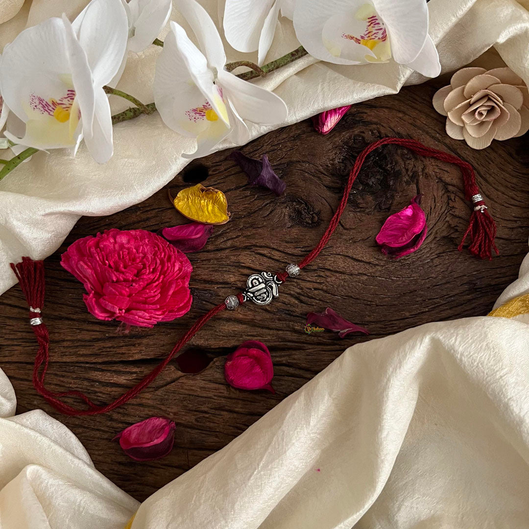 Celebrate and protect your bond with this one-of-a-kind Rakshabandhan Silver Rakhi-Ganesh! Featuring a stunning Shivling charm in the center, this silver rakhi symbolizes love, strength, and protection. Honor the sacred bond between siblings with this beautiful rakhi and make this Rakshabandhan truly special.