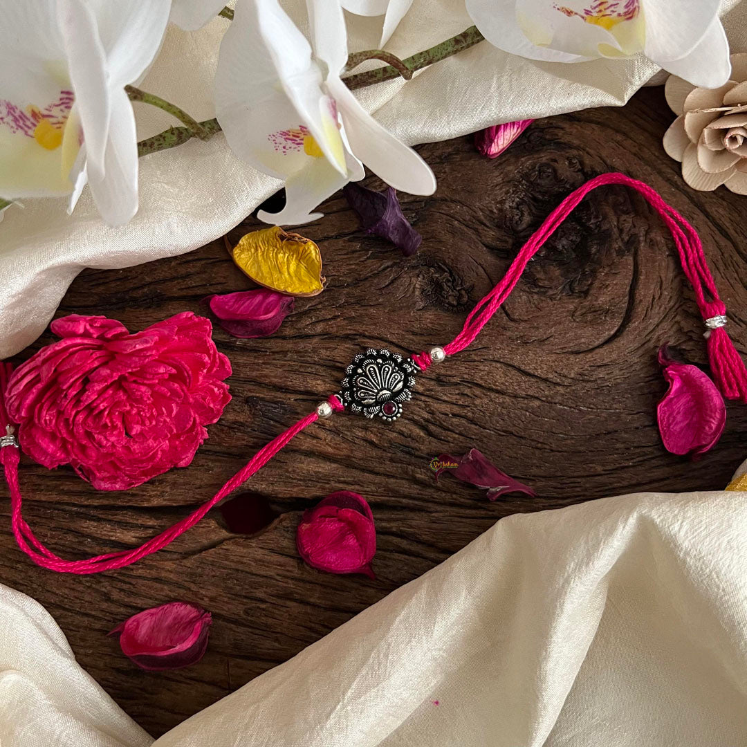Celebrate Rakshabandhan with our exquisite Silver Shell Pendant Rakhi. The delicate pink design adds a touch of elegance to this traditional symbol of sibling love. Show your sister how much she means to you with this beautiful and meaningful gift.